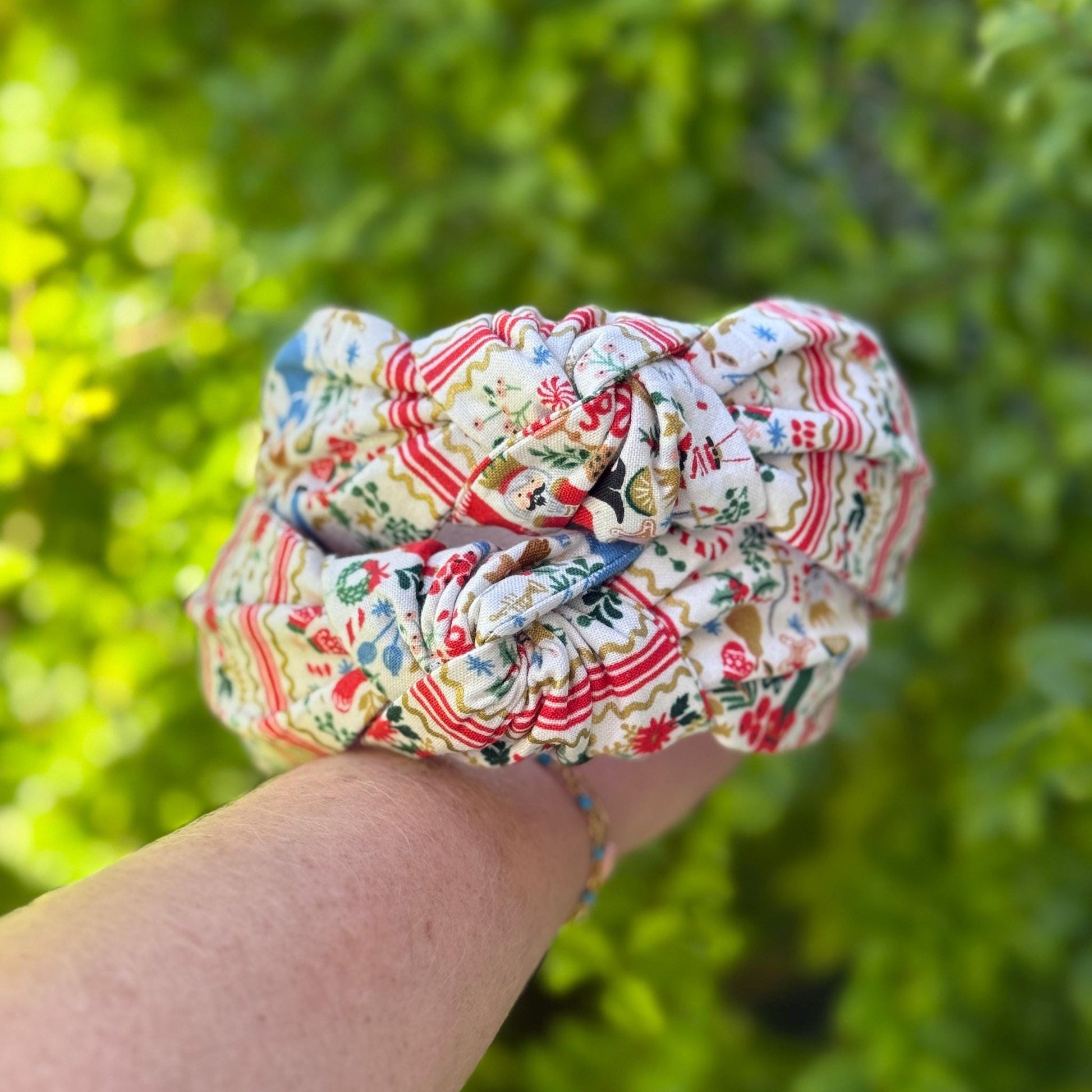 Cream & Gold Holly Jolly Nutcracker Topknot Headband | Made with Rifle Paper Company Fabric
