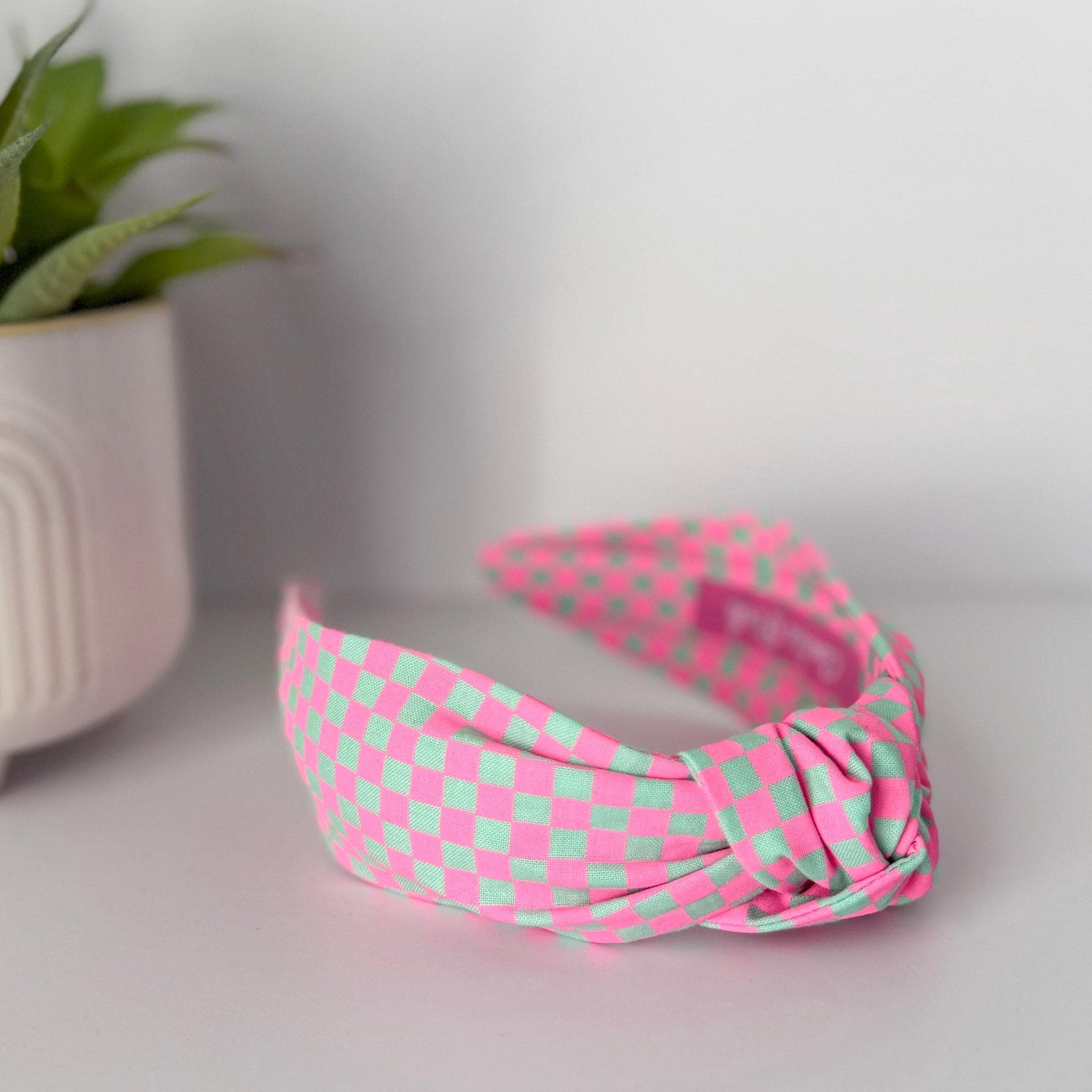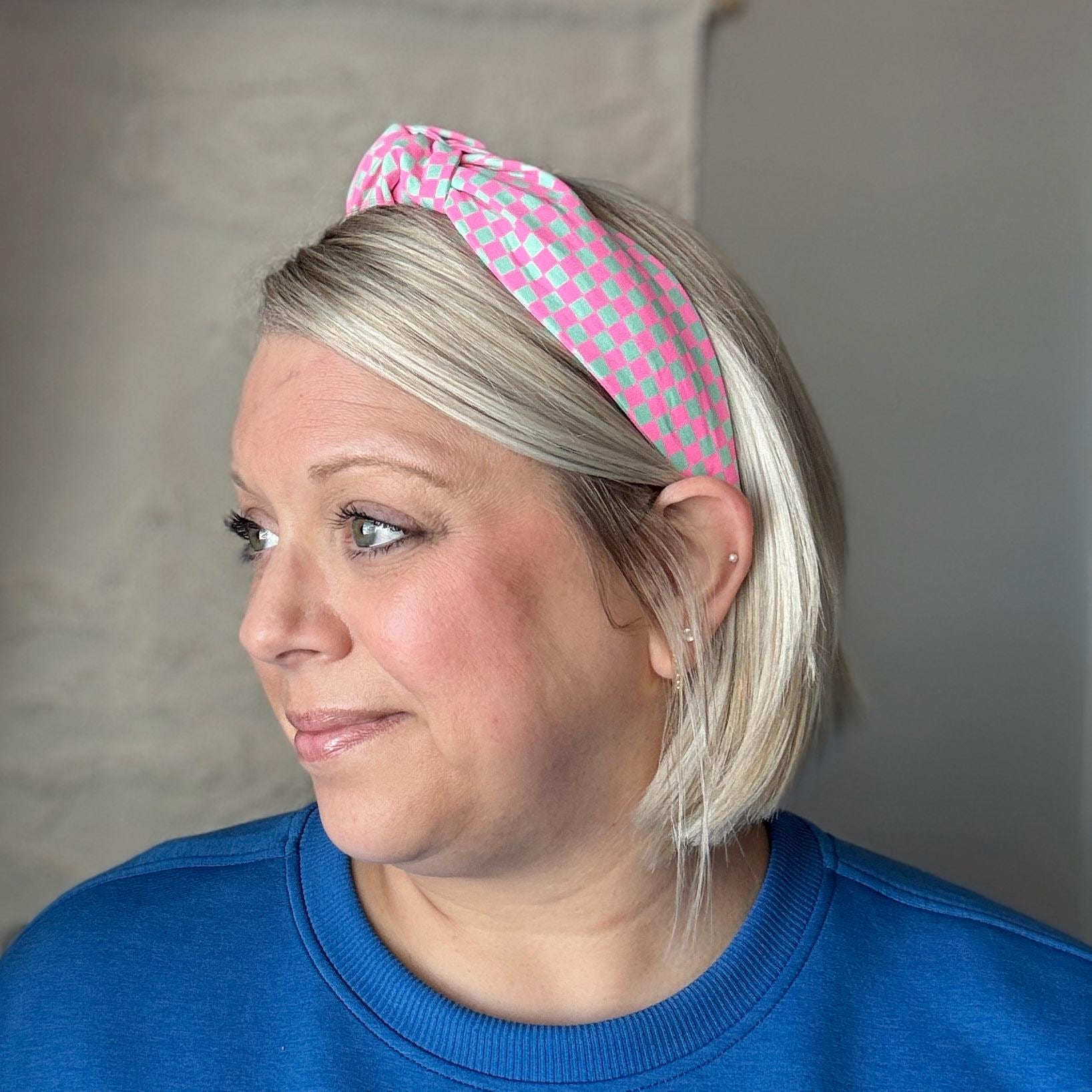 Neon Pink & Teal Checkered Headband