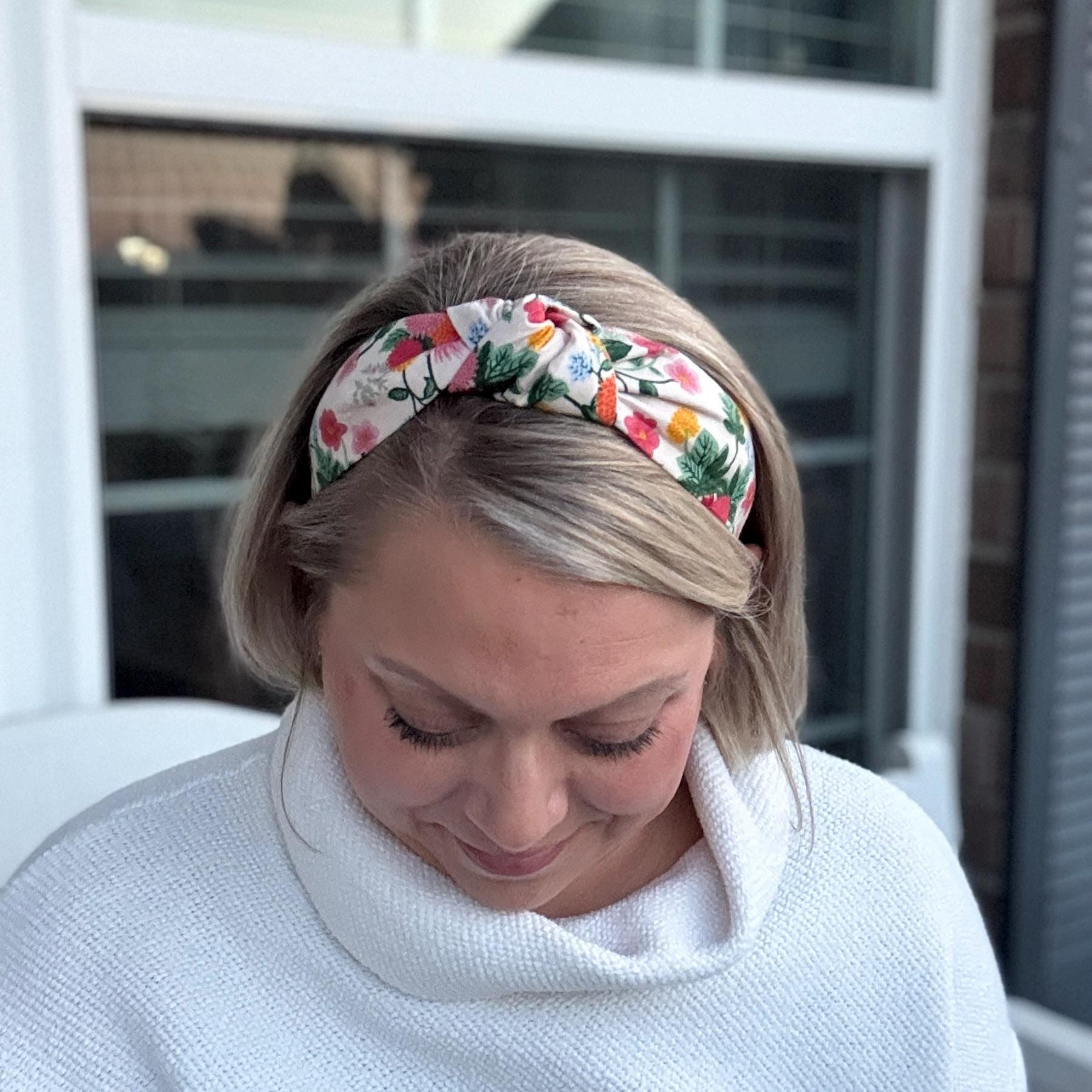 Dahlia Floral Topknot Headband made with Rifle Paper Co. fabric